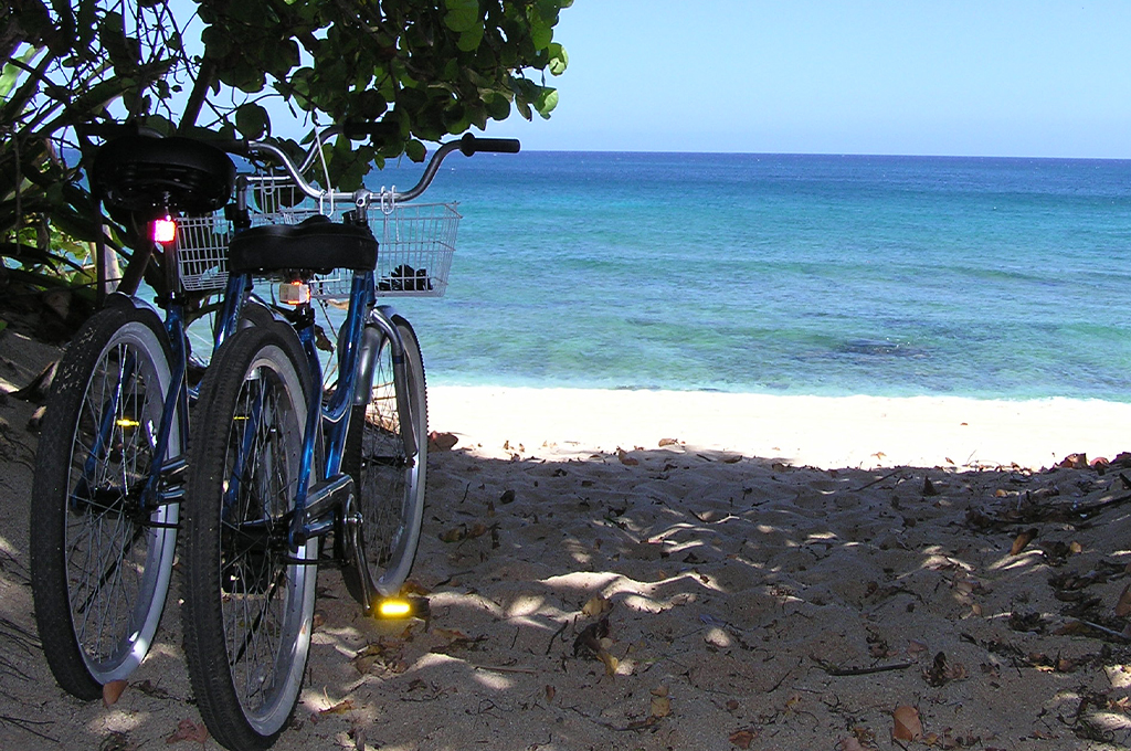 Embark on an unforgettable Bike Riding adventure along the shaded ‘Tree Tunnel Bike Path,’ a scenic route that meanders through lush greenery and alongside stunning white sand beaches.